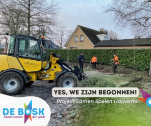 Het eerste deel van het terrein in Harkema wordt nu klaargemaakt, zodat binnenkort de pannakooi en de nieuwe speeltoestellen geplaatst kunnen worden.