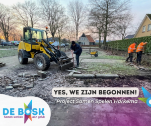 Het eerste deel van het terrein in Harkema wordt nu klaargemaakt, zodat binnenkort de pannakooi en de nieuwe speeltoestellen geplaatst kunnen worden.